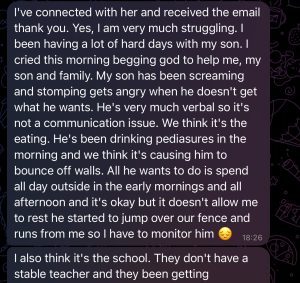 3: Walking on eggshells, trying to avoid tantrums, eloping, screaming, aggression… a full-time carer slash “doormat.”